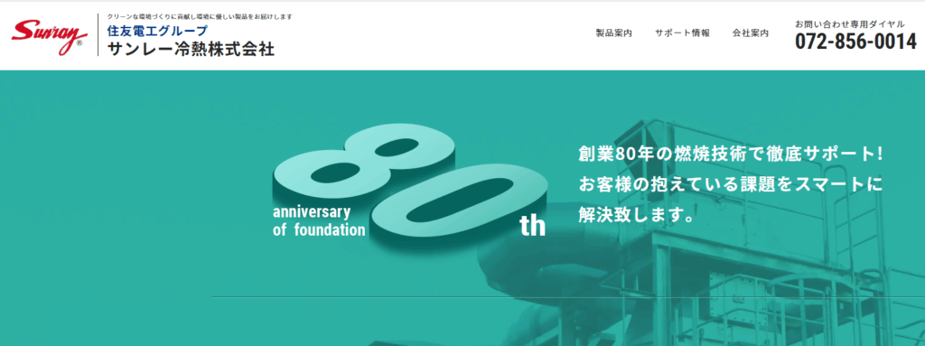 排ガス処理においては複数の会社を検討し、自社の状況に適切な機器を選ぶ必要があります。ここまでエア・ウォーター・メカトロニクス株式会社についてご紹介してきましたが、ここでは、同業であるサンレー冷熱株式会社をご紹介します。