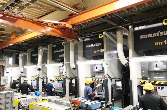 自動車部品事業では、近藤工業は設計から生産準備、塑性加工、組立てまでを一貫して社内で行う体制を整えています。高品質な車部品を提供するために、プレス技術や切削加工技術を駆使し、精度の高い部品を製造しています。自動車の排気系部品や車体系部品においては、特に高い専門性を発揮し、顧客のニーズに対応しています。